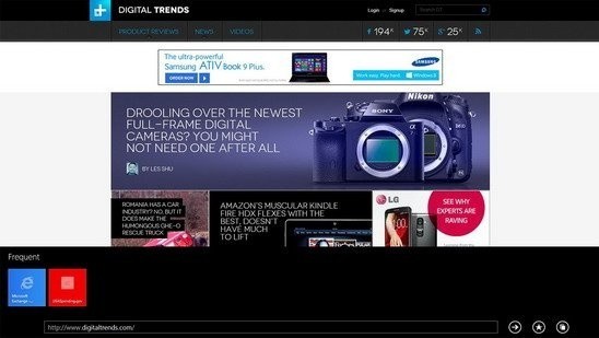 或许除了妈妈级的人群之外,没有人会使用老旧而缓慢的IE浏览器了。不过,Windows 8.1内置的IE11浏览器还是更适合触摸屏设备使用,并且功能也得到了增强,支持同时打开10个以上标签,载入速度也有所提升。